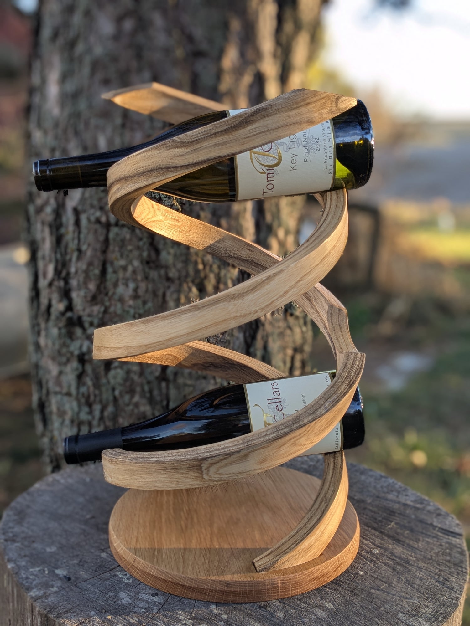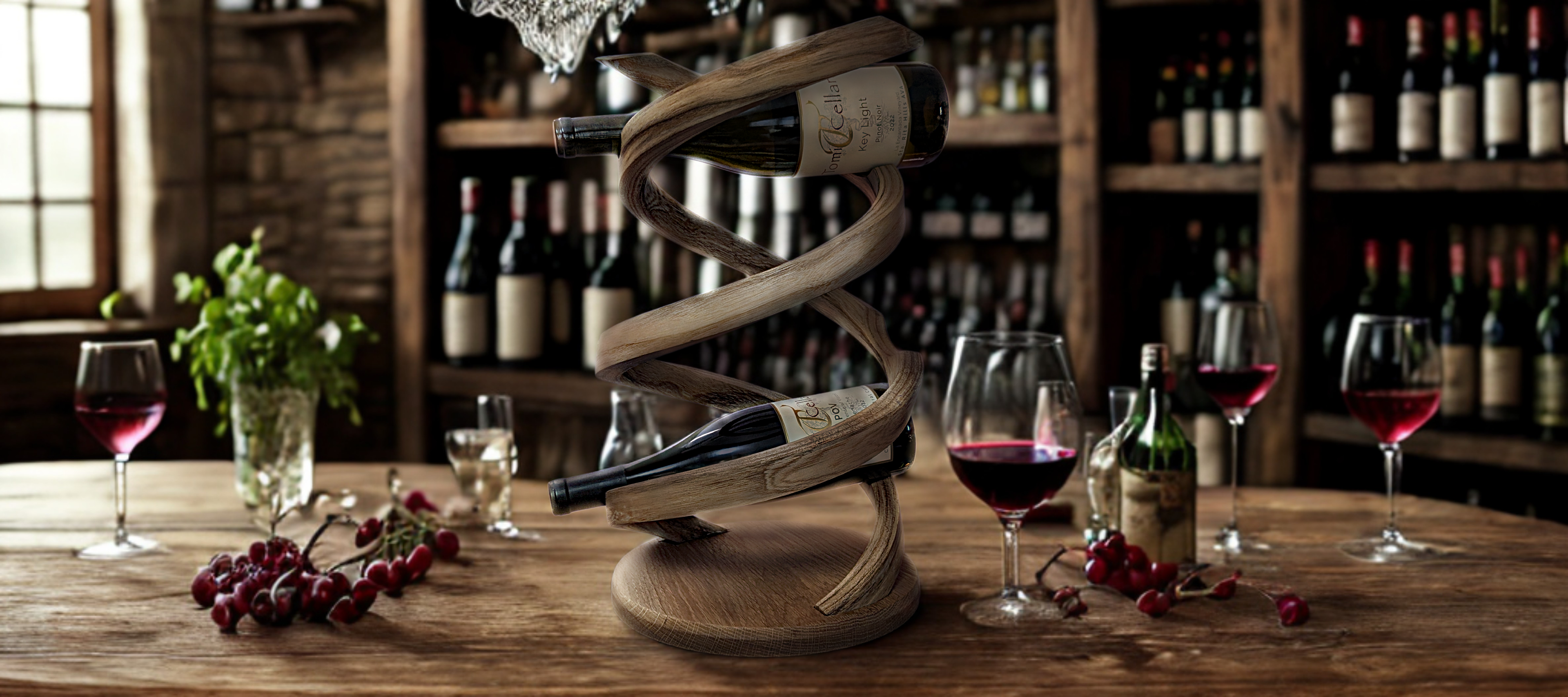 The Apeiron, a double helix wine rack is not merely a vessel for bottles—it is a daring sculpture born from the relentless pursuit of bending wood beyond its natural limits. Patience, and mastery converge to coax timber into a flowing patent-pending double helix form, a gesture of elegance that feels as inevitable as it is impossible.